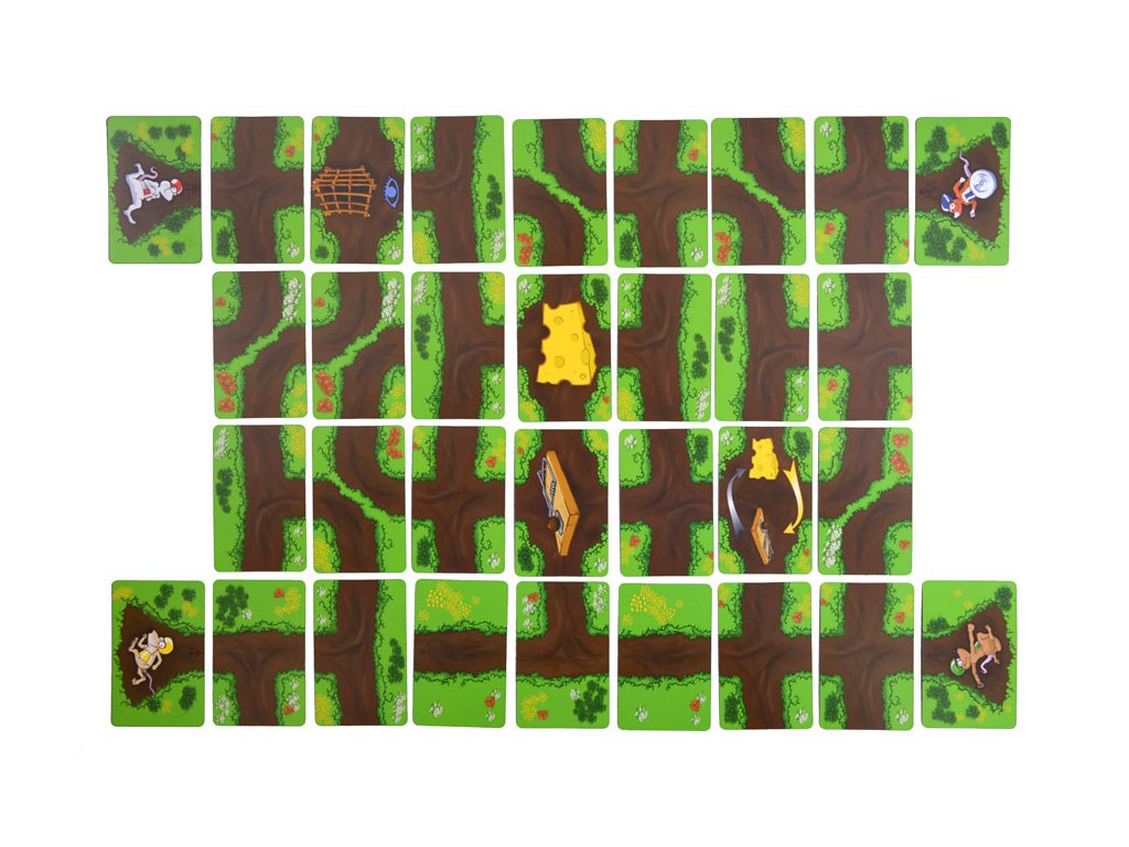 Hra je určena pro 1 – 4 hráče již od 5ti let. Nejprve jsou karty rozloženy na stůl lícem k desce stolu tak, že uprostřed jsou dvě zvláštní cílové karty, na nich jsou vyobrazeny sýr resp. pastička. Hráči jeden po druhém obrací kartu, nejbližší své myšce, a snaží se pomocí cestiček dostat svou myšku k sýru, avšak nesmí ji dostat do pastičky. Vítězí hráč, který jako první dostane svou myšku k sýru.
